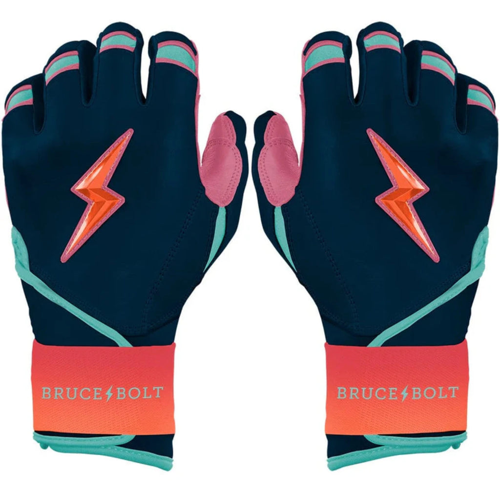 HIGHEST QUALITY, MOST DURABLE BATTING GLOVE IN BASEBALL AND SOFTBALL: Each pair of BRUCE BOLT batting gloves are handmade by skilled craftsmen using only the highest quality 0.9mm Cabretta leather and stitching techniques which makes our gloves buttery soft but more durable than any other glove on the market.