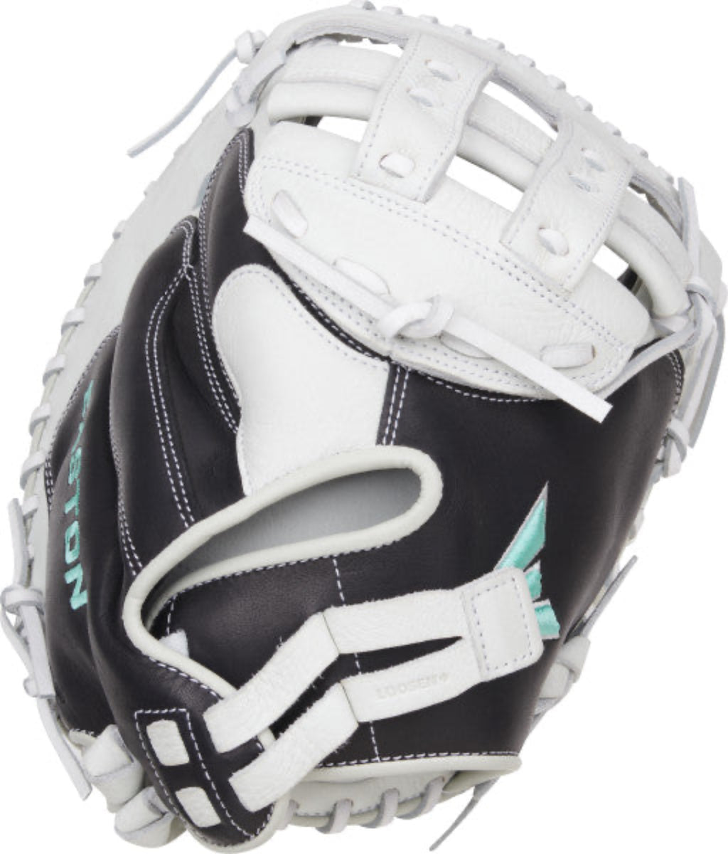 Command the plate with the Easton Fundamental 33-Inch Fastpitch Catcher’s Mitt. Crafted for fastpitch catchers, this mitt features a fastpitch-specific hand opening and the Quantum Closure System™ for a snug, secure fit. The Modified H-Web design offers the perfect blend of flexibility and structure, making it easy to frame pitches and secure throws. Its oil-tanned cowhide shell provides a soft, game-ready feel, while the super soft palm lining ensures comfort throughout every inning. Reinforced with durable rawhide laces, this mitt is built to last. Get ready for elite performance behind the dish with the Easton Fundamental fastpitch catcher’s mitt.