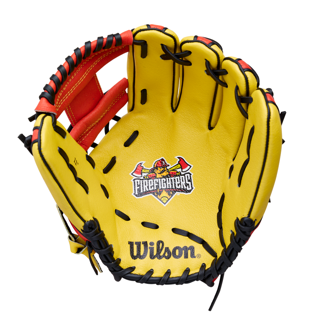 Bring the blue and yellow fun with the Fire Fighters™ 11” Youth Baseball Glove Featuring Wilson’s iconic H-Web design, an elastic Quick Fit Wrist and soft-and-sturdy top grain leather, this glove is ready to hit the field right away with a snug, lightweight feel that helps young players make every play fun.